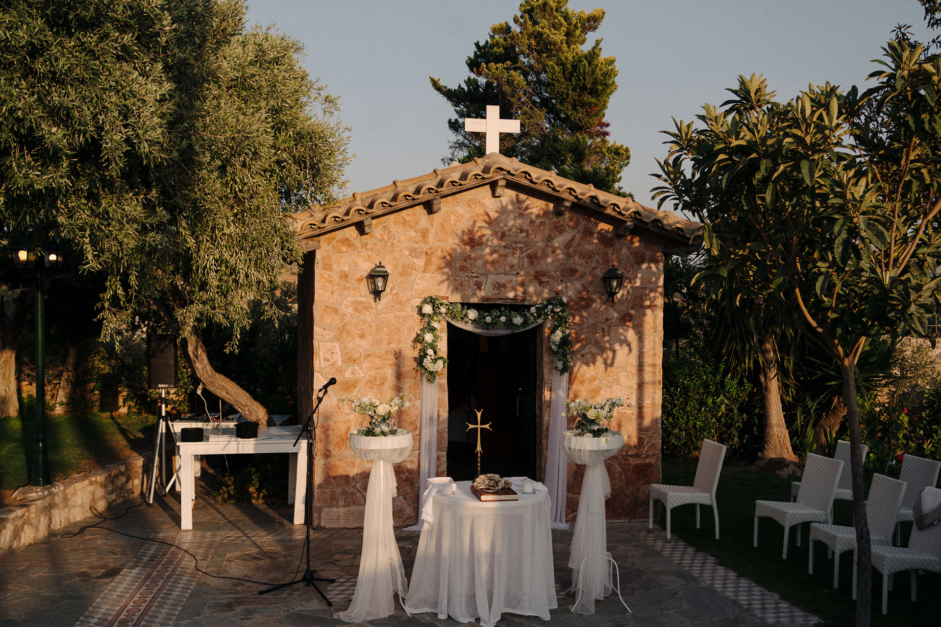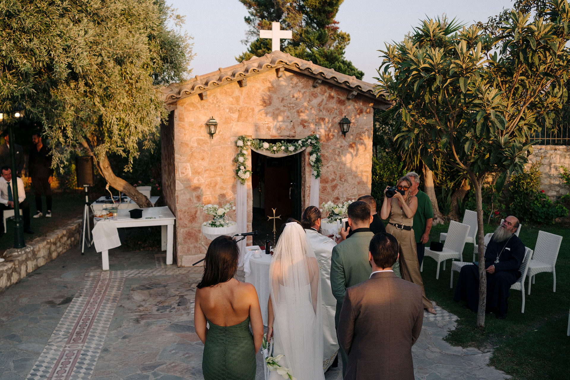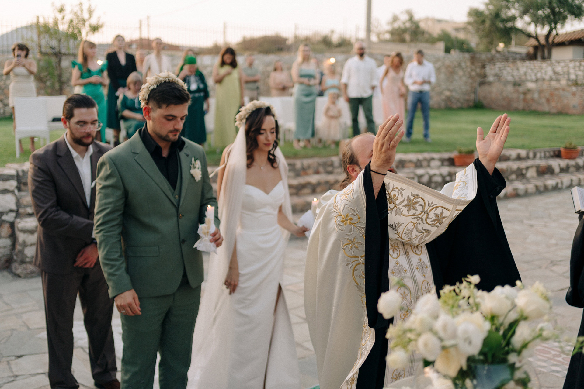 The celebration began with a heartfelt church ceremony at the venue’s private chapel, followed by an emotional reception filled with laughter, vows, and dancing under the Greek sky. Planned entirely by the couple, the wedding reflected their vision — intimate, authentic, and full of atmosphere.