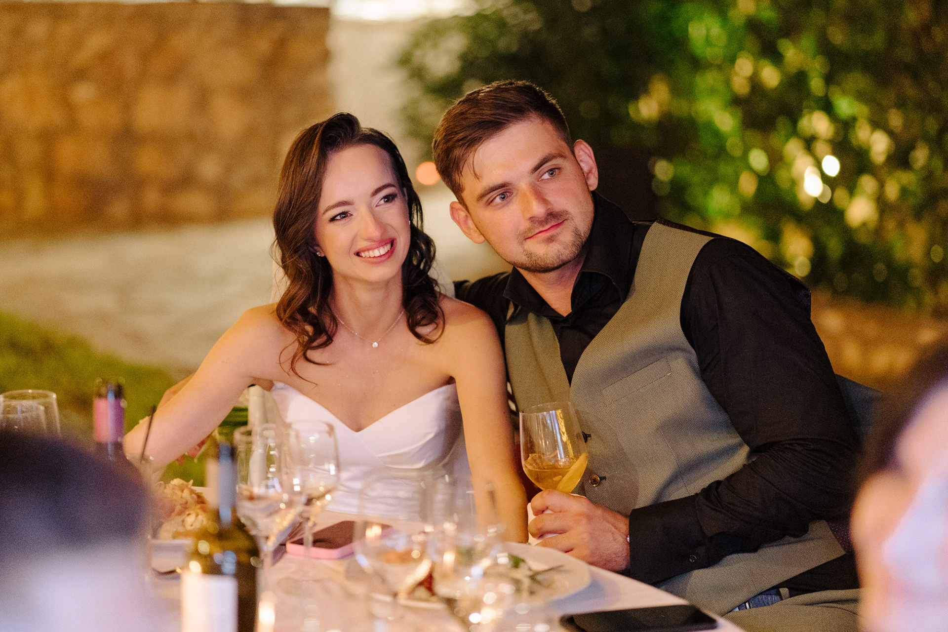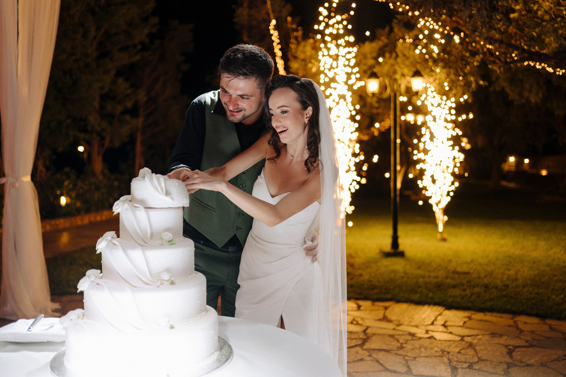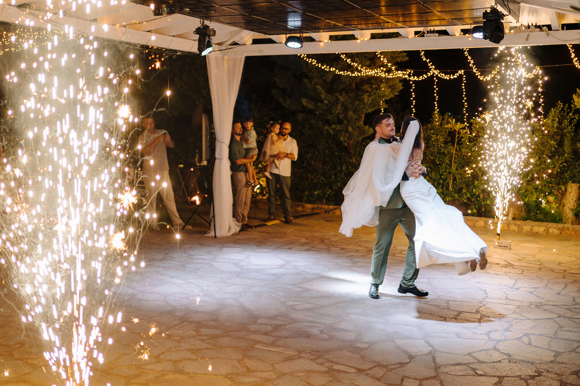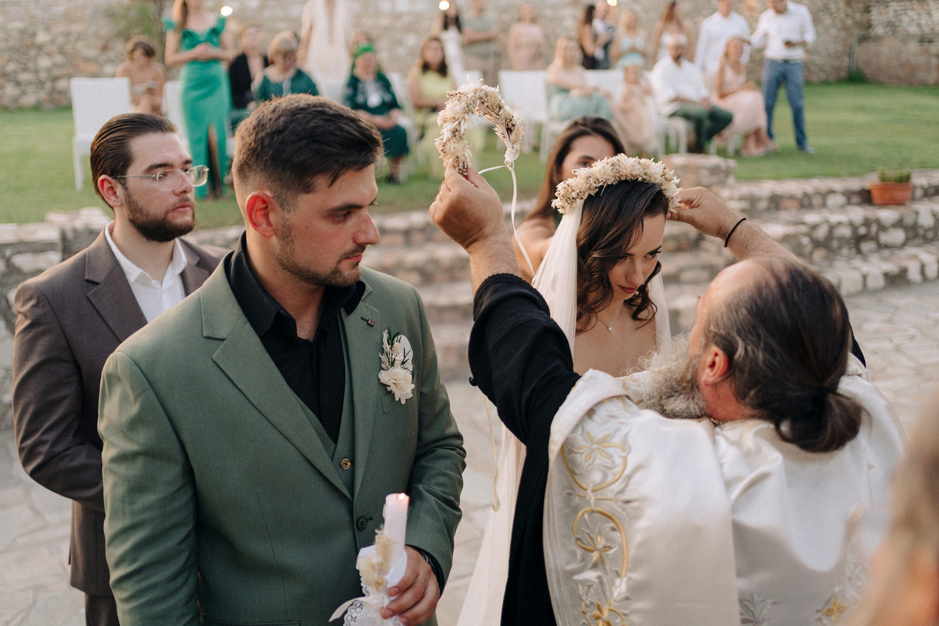 The celebration began with a heartfelt church ceremony at the venue’s private chapel, followed by an emotional reception filled with laughter, vows, and dancing under the Greek sky. Planned entirely by the couple, the wedding reflected their vision — intimate, authentic, and full of atmosphere.