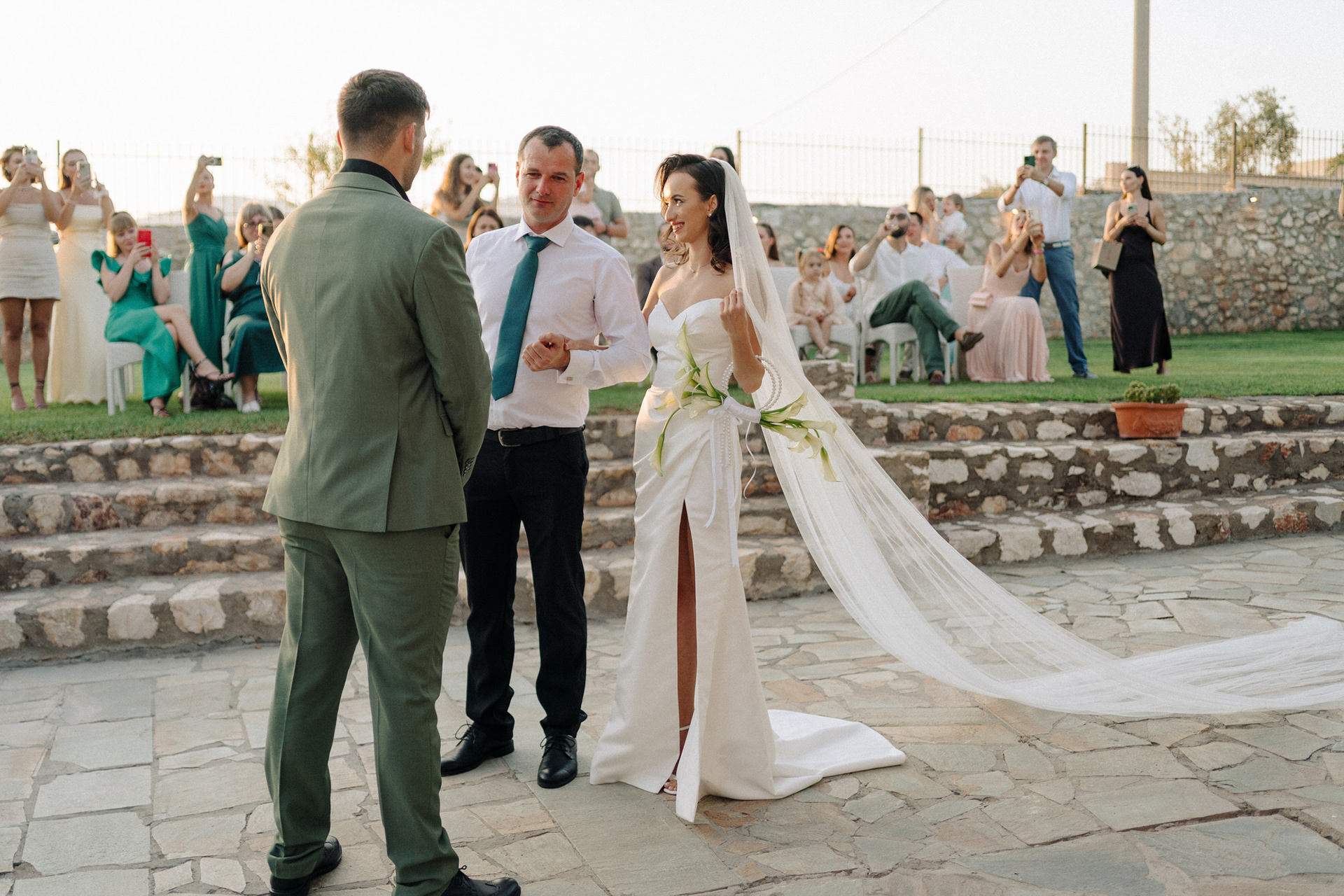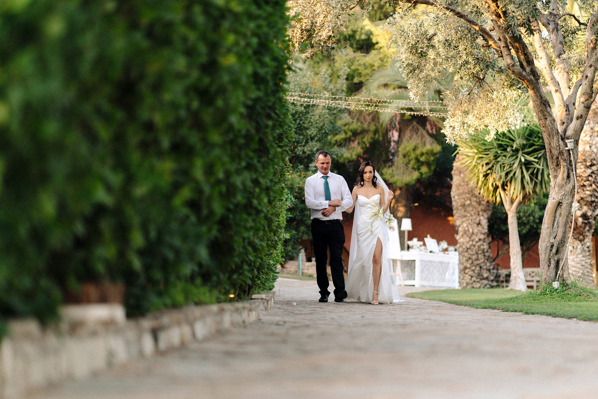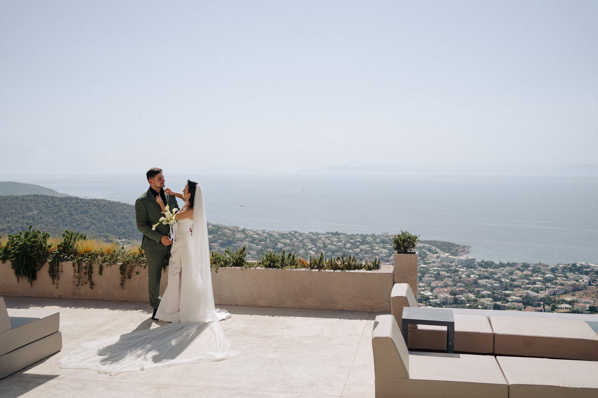 Ktimagea, a stylish olive grove venue near Athens, created the perfect setting for this Ukrainian destination wedding in Greece. Surrounded by Mediterranean landscapes, warm sunlight, and timeless greenery, the day felt both elegant and deeply personal.
