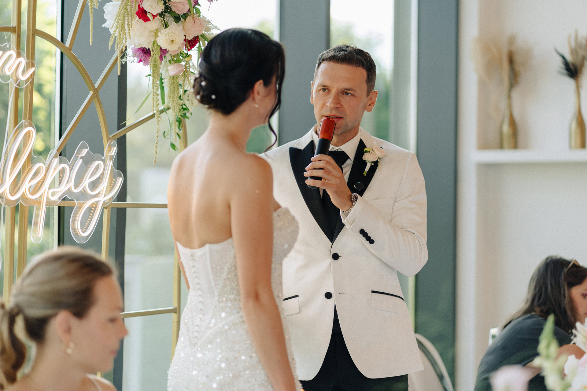 Set at the elegant Kurka Wodna near Warsaw, this celebration was a beautiful reminder that love only deepens with time. After many years together and raising a family, Małgorzata and Arkadiusz chose to renew their vows with a heartfelt church ceremony followed by an intimate wedding reception.